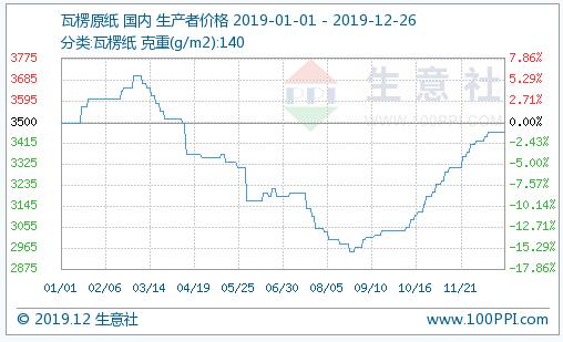 由2019年瓦楞原紙價格走勢圖可以看出,在3月初形成了全年價格最高點(diǎn),但是隨后價格開始持續(xù)走低,直至8月末瓦楞原紙價格達(dá)到全年最低點(diǎn)。 2019年瓦楞原紙價格全年最高點(diǎn) 進(jìn)入2019年開始瓦楞原紙價格就呈現(xiàn)上漲趨勢,1-2月份瓦楞紙價格震蕩上揚(yáng)為主,直至3月初形成了全年價格最高點(diǎn),參考均價為3700元/噸。 今年第一季瓦楞紙市場價格呈現(xiàn)先漲后降走勢,前期價格的上行主要因原料廢紙價格上漲,在成本增加的支撐下,紙企漲價意愿強(qiáng)烈。其次春節(jié)期間停機(jī)檢修紙企較多,市場供應(yīng)氛圍略顯緊張。另外正處春節(jié)前后期間,下游處于備貨旺季,市場需求表現(xiàn)良好。至使瓦楞原紙價格出現(xiàn)了全年價格最高點(diǎn)。但是3月份以后隨著新增產(chǎn)能的逐漸投放以及需求的轉(zhuǎn)淡,市場供需矛盾有所加劇,紙價開始進(jìn)入下行通道。 2019年瓦楞原紙價格全年最低點(diǎn) 在3月初之后瓦楞原紙價格開始持續(xù)走跌,直至8月末瓦楞原紙價格達(dá)到全年最低點(diǎn),參考均價為2966.67元/噸。 進(jìn)入第二季度瓦楞原紙市場繼續(xù)呈現(xiàn)震蕩下行走勢,交投氣氛不溫不火。中規(guī)模紙企出現(xiàn)多次價格下調(diào),使得市場恐慌情緒濃厚。雖然中間有幾次探漲趨勢,但落實(shí)情況均不理想,整體價格還是下滑為主。而價格的持續(xù)走跌首先是受原料廢紙價格下調(diào)和成本降低對市場形成利空影響;其次市場供應(yīng)壓力偏大,訂單不足情況下,包裝企業(yè)對瓦楞及箱板紙大量備貨意愿不強(qiáng),紙企庫存水平還是處于相對高位;最后市場心態(tài)偏空情緒加重,供需矛盾逐漸凸顯,導(dǎo)致紙價易跌難漲。 隨后的7月和8月瓦楞原紙市場價格仍以下滑為主。7月在原料廢紙價格下行和成本利空的影響下,原紙市場仍顯疲軟。7月16日受玖龍、理文等大型紙廠價格下調(diào)影響,部分紙廠出現(xiàn)跟跌態(tài)勢,下調(diào)幅度在100-200元/噸左右。而出貨方面仍舊處于低迷,下游需求難以釋放,采購積極性不強(qiáng)。8月1日玖龍、理文下調(diào)成品紙價格,各地區(qū)紙廠受此影響面積逐漸擴(kuò)大,因此紛紛跟隨下調(diào)成品紙價格,這也導(dǎo)致原紙價格的持續(xù)走低,市場上各種因素的疊加使得8月末瓦楞原紙價格達(dá)到全年最低點(diǎn)。 接下來在“金九銀十”的市場氛圍帶動下,價格開始出現(xiàn)上漲的現(xiàn)象。各地紙企漲價函頻發(fā),行業(yè)信心出現(xiàn)復(fù)蘇態(tài)勢,訂單開始逐步釋放,需求也有所增加。之后隨著雙十一、雙十二等電商節(jié)的到來,下游紙廠備貨生產(chǎn)相對積極,這對于市場需求量起到一定的支撐作用。瓦楞原紙市場直至年末價格依舊堅挺,各種節(jié)日大促扎堆來臨,下游包裝紙基本處于積極備貨狀態(tài),紙廠去庫存任務(wù)完成較好,故原紙價格仍舊呈現(xiàn)小幅上行趨勢。 綜上所述:2019年第一季度受需求旺季帶動形成瓦楞原紙價格全年最高點(diǎn),隨后的二、三季度價格持續(xù)走低,形成了瓦楞原紙價格全年最低點(diǎn),主要受高成本單一因素影響,需求支撐作用較弱。雖然之后在“金九銀十”的市場氛圍帶動下,價格呈現(xiàn)一路上升,截至年末,瓦楞原紙價格仍舊未能高于年初價格水平。 2019年全年瓦楞原紙價格一直處于相對低位,目前年末收官,低庫存、成本壓力增大又?jǐn)[在了紙企面前,再加之2020年底前國家計劃清零外廢進(jìn)口配額,原材料稀缺再度成為紙企共識。因為受環(huán)保及經(jīng)濟(jì)大環(huán)境影響,紙廠停機(jī)現(xiàn)象頻發(fā),造成原紙產(chǎn)量低于往年,再加之今年春節(jié)相比往年有所提前,下游紙企備貨積極,預(yù)計2020年第一季度瓦楞原紙價格將在3200-3500元/噸之間。 二、廢紙