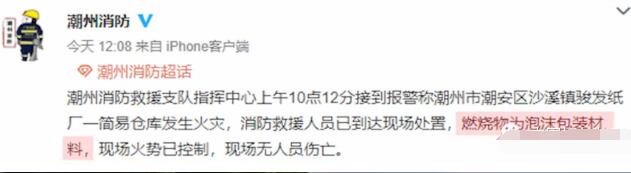 8月22日上午,廣東省潮州市潮安區沙溪鎮一紙廠的簡易倉庫發生火災。接到報警后,潮安區消防救援大隊迅速調派6輛消防車,36名消防員趕赴現場,同時調派周邊金石、龍湖、浮洋等鎮專職消防隊到場協助處置。