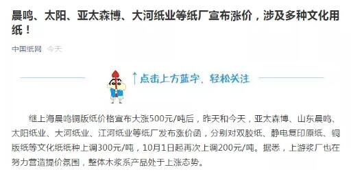 近期成品紙市場蠢蠢欲動,受白卡紙大幅提價影響,銅版紙、雙膠紙、復印紙等紙種紛紛宣布提價500元/噸的計劃,而上游漿廠也在努力營造提價氛圍,整體木漿系產品處于上漲態勢。