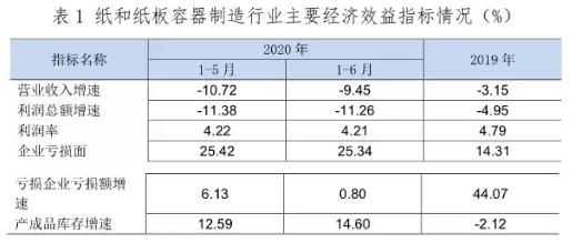 3、紙和紙板容器制造行業主要經濟效益指標情況 1月~6月,紙和紙板容器制造行業規模以上企業累計實現利潤53.34億元,同比增長-11.26%。 1月~6月,紙和紙板容器制造行業累計營業收入利潤率為4.21%,同比增長-0.09%。 1月~6月,紙和紙板容器制造行業累計虧損面為25.34%,同比增長6. 99%。虧損企業虧損額7.43億元,同比增長0.80%。產成品庫存79.03億元,同比增長14. 60%。紙和紙板容器制造行業主要經濟效益指標情況(見表1)。