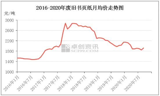 導語:近5年國廢書頁紙價格趨勢整體為沖高回落,隨著環保政策的一度收緊,下游需求明顯減少,此外富陽地區產能騰退,對廢書頁紙需求打擊較大。2020年廢書頁紙市場交投氣氛下滑。