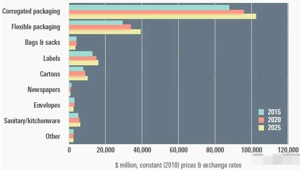Smithers的最新研究《柔性印刷的未來 - 2025年》指出,盡管受到新冠肺炎疫情的影響,全球柔版印刷市場仍然穩步增長。2020年,全球柔版印刷市場規模為1680億美元,預計到2025年,市場規模將達到1810億美元。2020年—2025年,全球柔版印刷市場的年復合增長率為1.6%。未來十年內,柔版印刷從模擬技術向數字技術轉換的趨勢十分明顯。 2015年—2025年柔版印刷各個細分市場的規模及增長預測