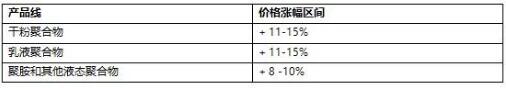 漲價(jià)調(diào)整即日起正式生效,或具體執(zhí)行視現(xiàn)有合同及條款而定,相關(guān)產(chǎn)品和價(jià)格漲幅區(qū)間如下: