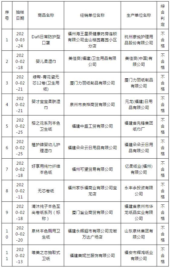 中國質(zhì)量新聞網(wǎng)訊 2021年4月2日,福建省市場監(jiān)督管理局網(wǎng)站公布2020年流通領(lǐng)域商品質(zhì)量抽檢結(jié)果。結(jié)果顯示,共有跑步鞋、飛織網(wǎng)跑鞋、防護口罩、廁用衛(wèi)生紙等87項商品抽檢結(jié)果為不合格。不合格商品的生產(chǎn)單位包括了杭州豪悅、永豐余、山東泉林等業(yè)內(nèi)知名企業(yè)。
