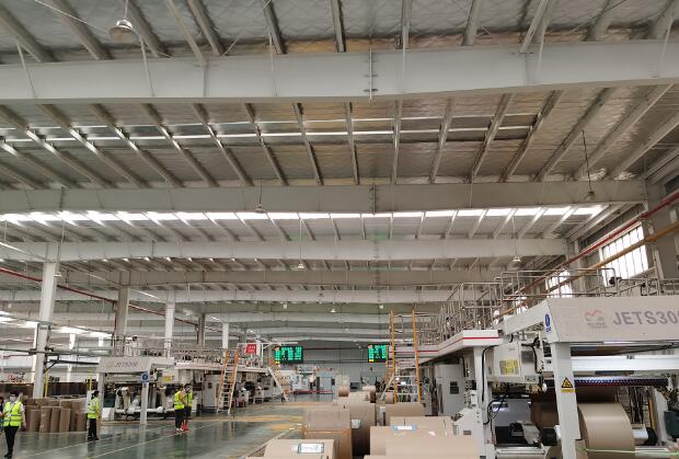 緊接著,現場嘉賓在工作人員的帶領下,來到湖北合興智能包裝科技有限公司大數據分析辦公室,并參觀了紙箱成型車間和成品車間。只見成型車間內兩條京山輕機1.8米頂配的瓦楞紙板線、數臺配備全自動上料機的上海旭恒平壓平模切機以及眾多先進的糊箱、打包等設備全力生產,趕制訂單。
