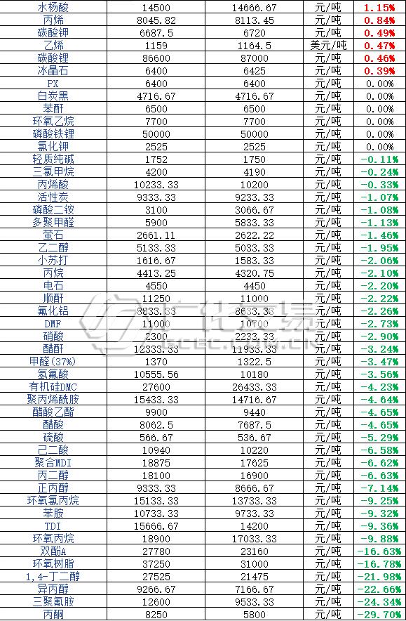 大宗商品的高價暴漲,國家的“穩價”措施不斷落實,“六穩六保”實行、承兌匯票縮短兌換期,各類囤積居奇、惡意炒漲的行為被盯上了,大宗原料市場價格波動不斷。 漲得有多猛,跌得就有多慘! 國務院:承兌匯票承兌期限縮短至6個月! 據中國政府網顯示,李克強總理在國務院會議上談及支持小微企業發展,其中提到為了支持小微企業,落實減稅降費措施,研究將承兌匯票期限縮短至6個月,減輕企業負擔。  *來源:中國政府網 近年來,承兌匯票的新聞層出不窮,被承兌匯票“禍害”的企業數不勝數。國家不斷出手完善應對措施。本次擬將承兌期限縮短至6個月,對小微企業而言,是一個向好發展的訊號。 除了提及縮短承兌期限,各項“穩價”舉措是本次會議的亮點,強調做好上下游穩定原料供銷協作,打擊囤積居奇、哄抬價格的行為,同時推進反壟斷、反不正當競爭執法。想要炒漲,怕是難上加難咯。 國家三次發聲,大宗市場三次暴跌! 5月以來,化工大宗連連走跌,穩價保供措施成效初顯。 5月12日 國務院會議要求分析市場做好市場調節,應對大宗商品快速上漲,加強貨幣政策保證平穩運行。 5月19日 國務院部署保價穩供工作,市場監管介入及政策實施遏制價格不合理上漲,大宗市場跌勢初現。 5月26日 國務院部署小微企業發展措施,強調打擊囤積居奇、哄抬物價,要求強化反壟斷、反不正當競爭執法,大量原料價格繼續回調。 自5月初至今,化工大宗漲跌榜顯示: 上漲的大宗化工有49種,其中上漲前三位為:黃磷(40.98%)、多晶硅(20.49%)、粗苯(12.92%); 下跌的化工大宗共有37種,其中跌幅榜前三位為:丙酮(-29.70%)、三聚氰胺(-24.34%)、異丙醇(-22.66%)。