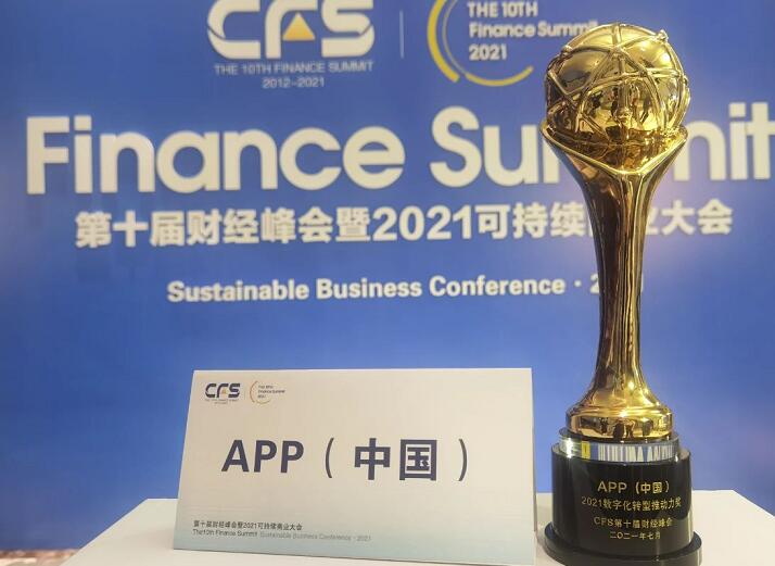 已在數字化轉型方面取得顯著成效的APP(中國),在本屆財經峰會上獲評數字化轉型推動力獎。