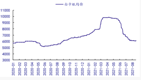 來源:中研普華數據庫 業內人士分析認為,價格下跌主要是因為目前市場整體的需求不足、紙廠希望能穩定市場,不過經銷商的出貨壓力比較大,導致心態難以統一、原料紙漿走勢偏弱。 博匯紙業方面表示,二季度以來,隨著海外疫情輸入、大宗商品保供穩價政策等多重因素疊加,漿紙市場呈現出前高后低的短期走勢,行業供需矛盾變化,企業經營面臨挑戰。 張星告訴記者,在大宗商品保供穩價政策的背景下,紙漿行業的供需格局有了一定的變化,經過2021年上半年上漲后,行業出現了一定的供需矛盾,導致下半年白卡紙的價格呈現下降趨勢。 在張星看來,在“限塑令”下,白卡紙逐漸成為塑料的替代品,白卡紙的未來需求規模較大,一些廠家也在擴充白卡紙產能,以滿足不斷增長的市場需求。預計下半年白卡紙的需求仍然較大,但在價格上,隨著紙漿等大宗商品價格的下跌,白卡紙的價格預計會保持下跌的趨勢。 西南證券研報指出,根據紙業網數據,未來2~3年白卡紙新增規劃產能預計約670萬噸,供給端產能集中放量或對價格上行有一定制約。