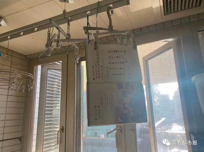 因味道難聞有家長將課本掛在家中通風處晾曬。