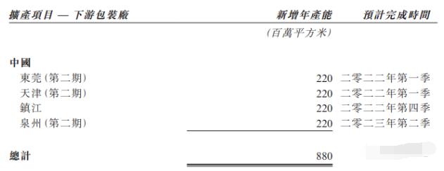 另外,集團正在有序地發展下游包裝業務,開拓新客源,為終端客戶提供一站式高品質產品及服務,借此差異化搶占市場份額。截至2021年12月31日止,集團下游總設計年產能約20億平方米(部分瓦楞紙板用以內部生產瓦楞紙箱),預計于2022及2023年將分別增加6.6及2.2億平方米年產能。
