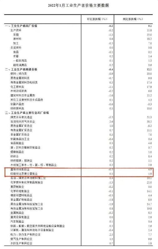 值得關(guān)注的是,造紙和紙制品業(yè)工業(yè)生產(chǎn)者出廠價格同比增長4.9%;印刷和記錄媒介復(fù)制業(yè)工業(yè)生產(chǎn)者出廠價格同比增長1.9%。