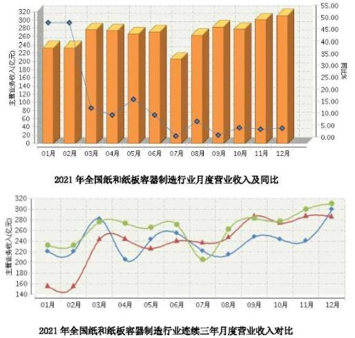 日前,中國包裝聯合會公布了《2021年紙和紙板容器制造行業運行概況》,披露了2021年紙和紙板容器制造行業的營業收入、利潤總額,以及箱紙板、紙制品、瓦楞紙箱年產量。其中,2021年全國瓦楞紙箱累計產量3444.24萬噸,廣東、浙江、四川年產量位居前三。 規上企業累計營收近3200億 數據顯示,2021年,我國紙和紙板容器行業規模以上企業(年營業收入2000萬元及以上全部工業法人企業)2517家,比去年增加7家。 在營收及利潤方面,2021年,我國紙和紙板容器行業規模以上企業累計完成營收3192.03億元,同比增長13.56%,增速比去年同期提高了16.09個百分點;