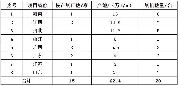 ●理文在江西基地投產1臺寶拓和2臺信諾的新月型紙機,合計產能5.6萬t/a;