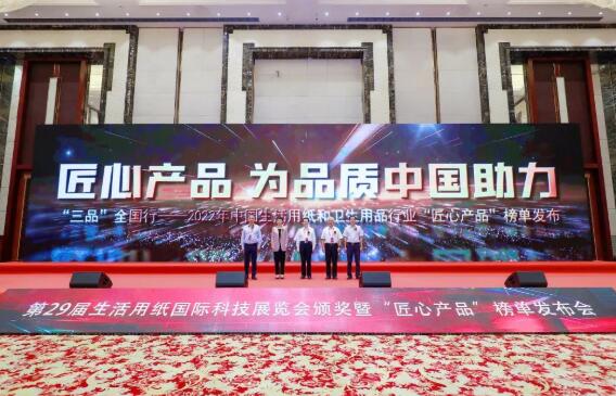 2022年7月28日,在第29屆生活用紙國際科技展覽會頒獎暨“匠心產品”榜單發布會上,生活用紙行業領導品牌——金光集團APP(中國)旗下金紅葉紙業「清風」,榮獲“2022年度中國生活用紙行業匠心產品獎”。