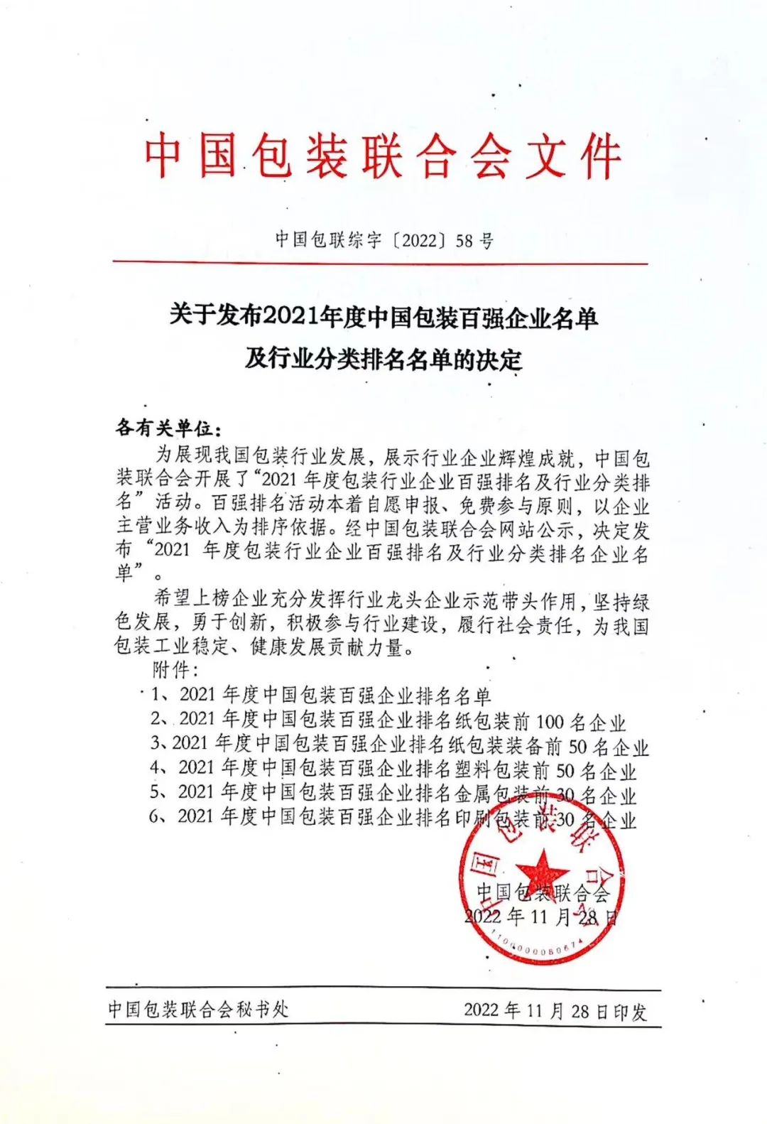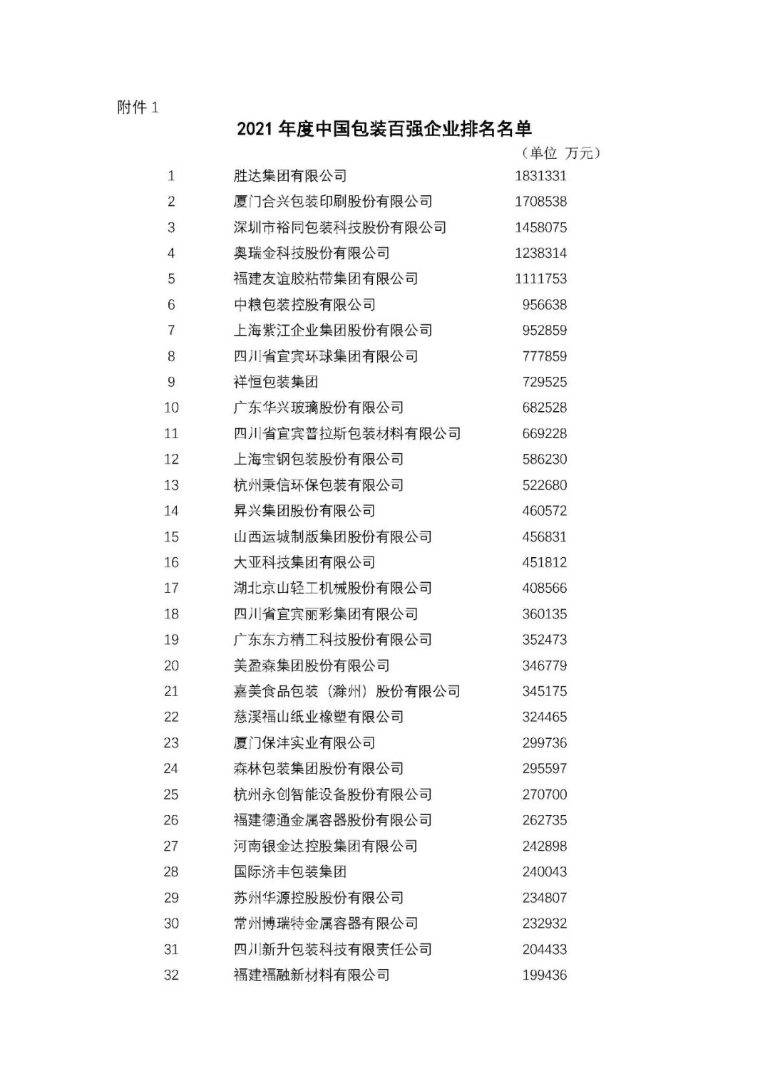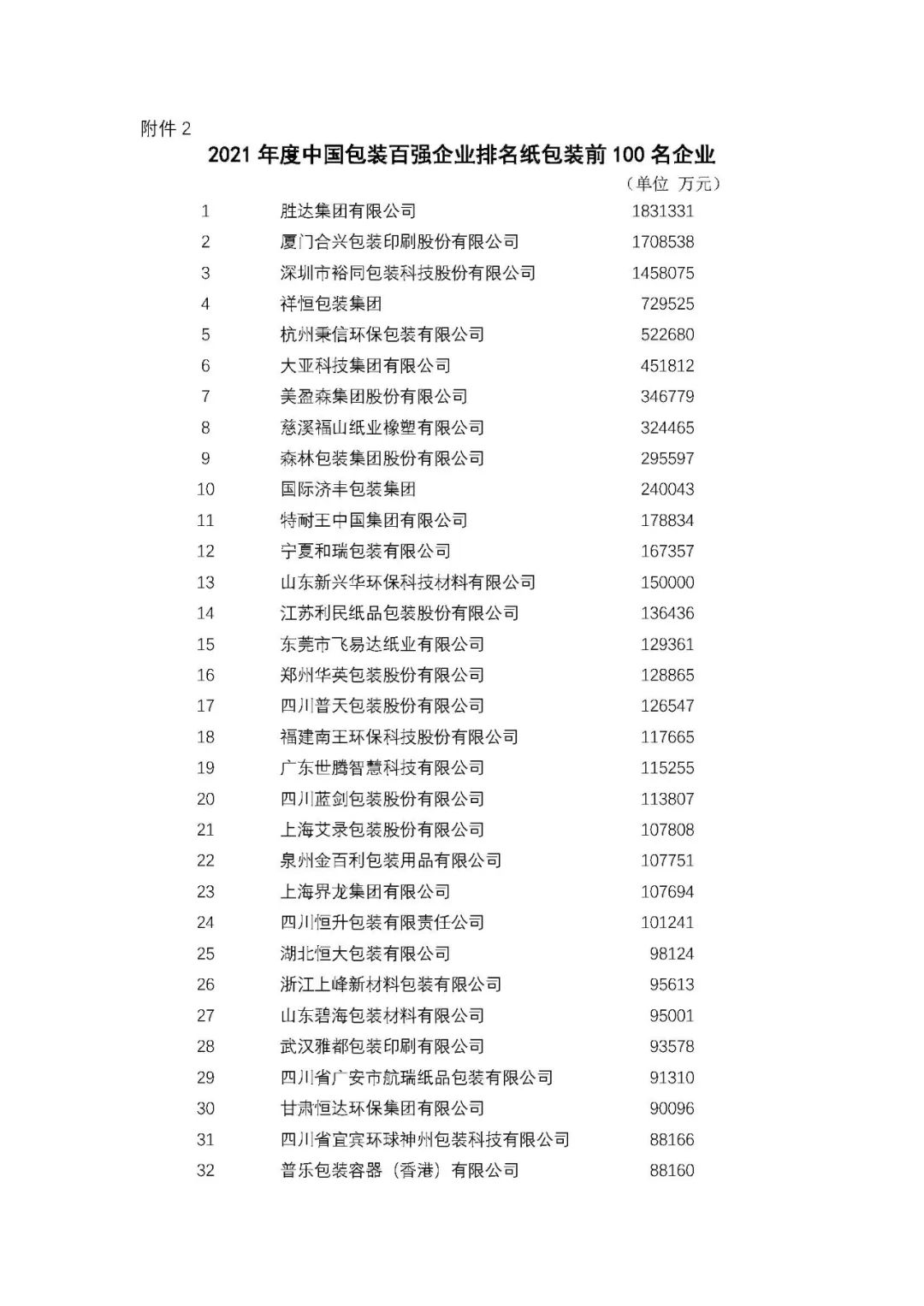 2021年度中國(guó)包裝百?gòu)?qiáng)企業(yè)排名:紙包裝企業(yè)前100強(qiáng)