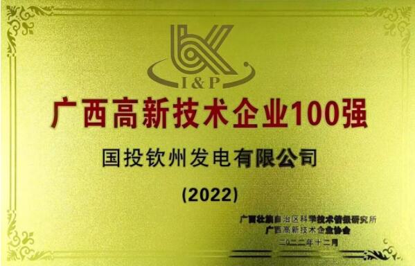 近日,廣西壯族自治區科學技術廳發布2022年廣西高新技術企業百強榜單,廣西金桂漿紙業有限公司、國投欽州發電有限公司2家中國(廣西)自由貿易試驗區欽州港片區(以下簡稱欽州港片區)企業入選榜單。