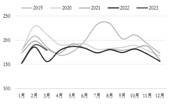 中國1—2月紙漿進口量達到551萬噸,為歷史同期最高值,其中針葉漿進口量為123萬噸,同比雖高于去年,但仍明顯低于2020年和2021年。而闊葉漿進口量是歷年同期最高,其他品種月進口量也同比增加5.5%,這也再度印證了闊葉端寬供應格局對漿價的抑制效應。