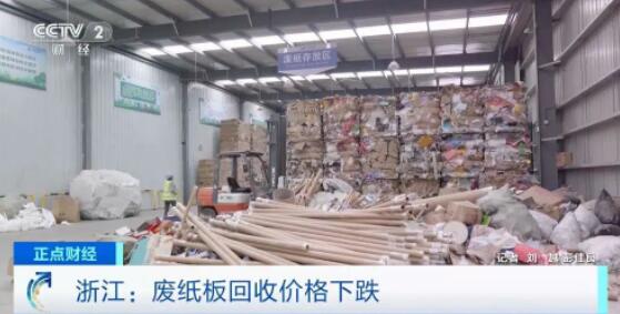 記者來到浙江省慈溪市的一家廢品打包站,這里來往的回收商并不多,機器也沒有在運行。幾位小型回收商表示,近期廢紙板的回收情況十分冷淡。 廢品回收人員 樊師傅:去年黃板紙要2元多一公斤,今年現(xiàn)在只有1.5元多了。超市紙現(xiàn)在只有1.2元(一公斤),跌了三四角、四五角左右。 廢紙箱的回收價下跌,也讓周圍很多工廠和居民出手的意愿下降。多數(shù)回收商說近期的收入大打折扣。