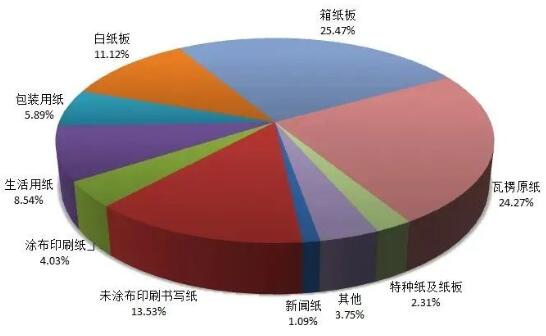 (2022年紙及紙板各品種生產量占總產量的比例)