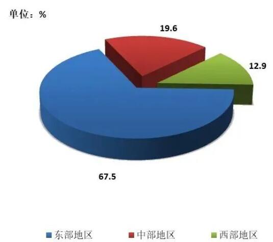(2022年紙及紙板各品種消費量占總消費量的比例) 2、紙及紙板生產布局與集中度 根據中國造紙協會調查資料,2022年我國東部地區11個省(區、市),紙及紙板產量占全國紙及紙板產量比例為67.5%;中部地區8個省(區)比例占19.6%;西部地區12個省(區、市)比例占12.9%。