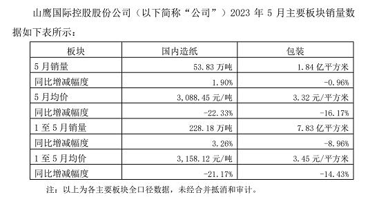 5月銷量53.83萬噸,同比增減幅度1.90%;