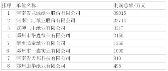表3 2022年河南省利潤總額前八名的造紙企業(yè)