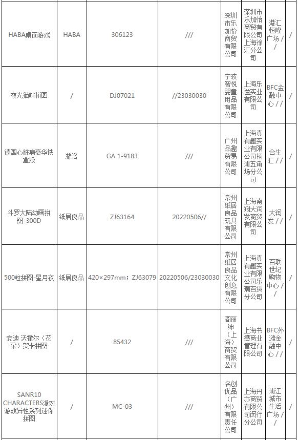 2023年上海市紙制玩具產品質量監督抽查所檢項目符合相關標準的產品