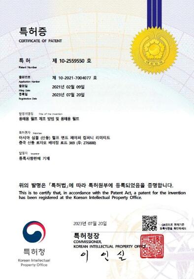 近日,亞太森博(山東)漿紙有限公司通過PCT途徑申請(qǐng)的一項(xiàng)國(guó)際發(fā)明專利成功獲得韓國(guó)知識(shí)產(chǎn)權(quán)局授權(quán)。