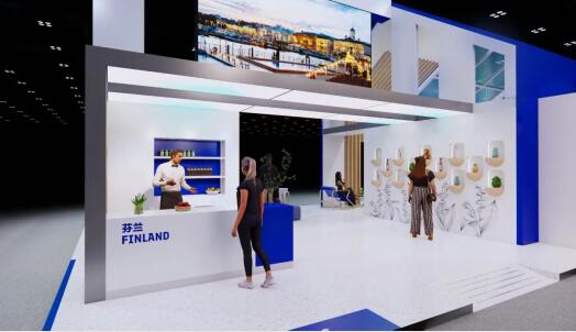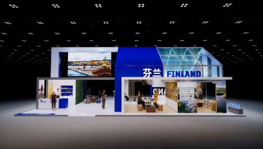 芬蘭館效果圖 繼2018年、2019年參與芬蘭國家館后,2022年,芬林集團作為第五屆進博會唯一歐洲大型林紙企業代表獨立參展。2023年11月,我們將再次攜手芬蘭國家商務促進局登陸進博。