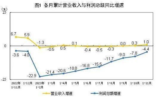 11月27日,國家統(tǒng)計(jì)局官網(wǎng)公布了2023年1-11月份全國規(guī)模以上工業(yè)企業(yè)利潤情況。數(shù)據(jù)顯示,全國規(guī)模以上工業(yè)企業(yè)實(shí)現(xiàn)利潤總額69822.8億元,同比下降4.4%,降幅比1-10月份收窄3.4個(gè)百分點(diǎn)。
