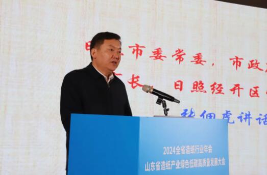 張佃虎在講話中對大會的順利召開表示熱烈祝賀,向各位來賓表示誠摯歡迎。他指出,造紙行業是拉動林業、農業、機械制造、化工、印刷和包裝等產業發展的重要引擎。近年來,日照市委、市政府圍繞培育發展新質生產力,聚焦漿紙產業綠色低碳高質量發展,推動漿紙產業由“漿”向“紙”延鏈補鏈強鏈,實現了產業優化升級。