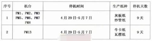 四川金田紙業2024年“五一”期間各紙機停機計劃