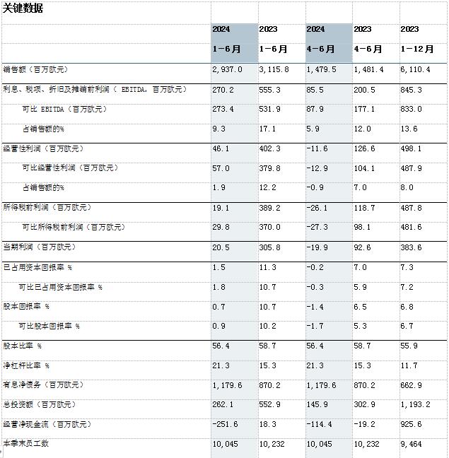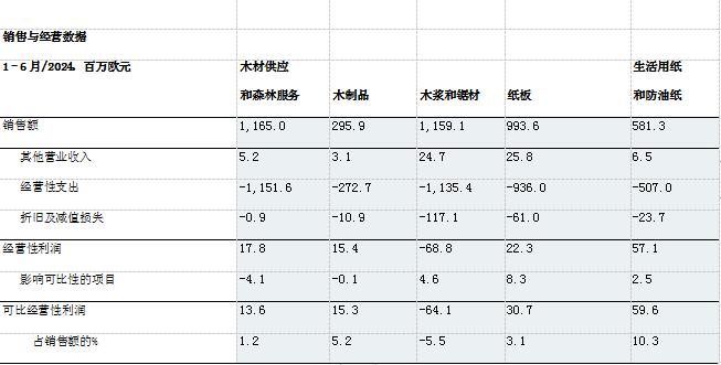 2024年1-6月(2023年1-6月同比數據) 銷售額為29.37億歐元(同比:31.16億歐元) 經營性利潤為4600萬歐元(同比:4.02億歐元);可比經營性利潤為5700萬歐元(3.8億歐元) 稅前利潤為1900萬歐元(同比:3.89億歐元);可比稅前利潤為3000萬歐元(同比:3.7億歐元) 可比已占用資本回報率為1.8%(同比:10.7%) 經營性凈現金流負2.52億歐元(同比:1800萬歐元) 2024年4-6月(2023年4-6月同比數據) 銷售額為14.8億歐元(同比:14.81億歐元) 經營性利潤為負1200萬歐元(同比:1.27億歐元);可比經營性利潤為負1300萬歐元(同比:1.04億歐元) 稅前利潤為負2600萬歐元(同比:1.19億歐元);可比稅前利潤為負2700萬歐元(同比:9800萬歐元) 可比已占用資本回報率為-0.3%(同比:5.9%) 經營性凈現金流為負1.14億歐元(同比:負1900萬歐元) 2024年上半年主要事件 芬林集團長纖漿在歐洲和中國的平均銷售價格較上一季度有所增長。 歐洲和北美市場對針葉商品漿的需求強勁。在中國,商品漿的采購活動有所減弱。 與上一季度相比,芬林集團紙板產品的需求和價格保持穩定。交貨量略有增加。 在對蒸發部門氣體爆炸造成的損壞進行修復后,凱米生物制品廠于6月份重新投入生產。 4月,芬林紙板做出了升級辛佩萊(Simpele)工廠紙機的投資決定。 2024年5月13日,芬林集團完成將旗下俄羅斯子公司的所有權轉讓給VLP集團的交易。2022年,芬林集團停止了在俄羅斯的業務運營,包括斯維爾(Svir)鋸材廠、木材供應和紙板銷售。5月完成交易后,芬林集團在俄羅斯不再擁有任何資產。該交易對財報期內的經營成果產生了1380萬歐元的影響。 2024年7-9月業績展望 與2024年4-6月相比,芬林集團7-9月的可比經營性利潤預計將有所改善。 芬林集團總裁與首席執行官何亦凱(IlkkaHämälä): 2024年上半年,芬林集團的財務狀況非常不景氣。這是由于銷售價格(尤其是紙漿和紙板)同比下降,以及木材成本持續上升。在財報期內,因政治罷工導致營業利潤損失6000萬歐元。凱米(Kemi)生物制品廠蒸發部門發生的氣體爆炸使可比營業利潤在保險賠償前減少了約1億歐元。盡管數據黯淡,我們的許多業務都取得了積極的發展。在歐洲,紙漿市場在第二季度表現強勁,價格水平也在不斷提高。2024年對原生纖維紙板的需求與去年創紀錄的低水平相比明顯有所改善。盡管建筑行業持續疲軟,但Kerto®LVL(單板層積材)在價格和需求方面都保持了穩定和良好的水平。生活用紙的盈利狀況仍在合理范圍,但原材料價格對業績水平有很大影響。在我們所有的產品類別中,目前只有鋸材和云杉膠合板的疲軟周期仍在繼續,它們直接受到了建筑業低迷情緒的影響。 年初,我們繼續為集團的未來發展做工作。我們的Kuura®紡織纖維項目已進入下一階段,我們將在該階段探索工業投資的機會。示范工廠將繼續運營,為市場生產紡織品原料,以獲得客戶反饋。 位于芬蘭勞馬(Rauma)的模塑MuotoTM纖維基包裝工業規模工廠的前期工程項目正在進展中。今年下半年,我們在艾內科斯基(Äänekoski)的示范工廠將從開發活動轉向為最終客戶生產,為工廠的工業化階段尋求產品開發反饋。該產品的主要最終用途是替代化石材料用于食品包裝。我們還在研究于艾內科斯基建造的示范工廠提煉木質素的問題。木質素可用于替代許多化學工業產品中的化石原料。它的第一個應用領域將是混凝土行業中使用的添加劑。從紙漿行業的燃燒氣體中捕捉碳的研究是一個非常廣泛和重要的開發項目。歐盟未來更嚴格的碳捕集目標包括大量技術碳捕集計劃。芬林集團的碳捕集潛力每年超過1000萬噸,但該項目在技術方面極具挑戰性,并且需要立法支持捕集碳的使用。 這些大型開發項目的準備和潛在實施需要芬林集團的現有業務保持競爭力,并為開發投入創造現金流。芬林集團主要產品的市場正在不斷擴大,我們在選定的產品細分市場中擁有強大的地位。紙漿行業對芬蘭林業極為重要,其形勢與我們作為全球最大的針葉商品漿生產商的市場地位相匹配。 芬林芬寶的所有四家工廠在針葉漿生產方面都具有世界一流的績效表現,其中凱米和艾內科斯基工廠與競爭對手相比更是獨樹一幟。在歐洲和美國,芬林紙板的折疊紙板產品在高要求細分市場中處于領先地位。去年完成的胡蘇姆(Husum)紙機產能升級擴建工程使其成為歐洲效率最高的設備。芬林紙板已決定對辛佩萊紙板廠的紙機進行現代化改造,作為該廠更廣泛發展投資計劃的一部分。這將確保未來運營的質量和財務競爭力。由于在瑞典瑪麗斯塔德(Mariestad)的新生產線和曼塔(Mänttä)工廠的發展計劃,芬林生活用紙將加強其作為北歐領先生活用紙生產商的地位。正在進行的對艾內科斯基工廠的投資將顯著提高Kerto®LVL的產量和生產效率,滿足市場的強勁需求。 芬林集團的短期和長期工業發展措施側重于提高附加值和加強工業競爭力。一切都以芬蘭的商業林為基礎——無論是現在還是將來。關注生態、經濟和社會平衡的可持續林業發展工作必須積極、公開和堅持不懈地進行下去。芬蘭林業和森工行業的成功在保障國家福祉方面發揮著重要作用。芬蘭商品出口凈收入的約三分之一來自使用芬蘭原材料和勞動力的林業。出口收入產生的現金流通過多種途徑用于為芬蘭社會創造福祉。