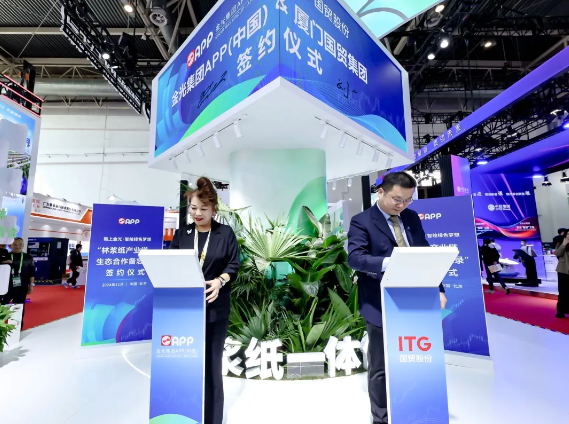 11月27日下午,金光集團(tuán)APP中國與中國銀行、中國郵政儲(chǔ)蓄銀行及廈門國貿(mào)集團(tuán)“林漿紙產(chǎn)業(yè)鏈生態(tài)合作備忘錄”簽約儀式在APP中國鏈博會(huì)展臺(tái)隆重舉行,攜手展現(xiàn)金融機(jī)構(gòu)與先進(jìn)制造業(yè)的合作新范式。 金光集團(tuán)APP(中國)副總裁翟京麗、中國銀行總行交易銀行部副總經(jīng)理李曉瑋、中國郵政儲(chǔ)蓄銀行總行普惠金融事業(yè)部總經(jīng)理耿黎、廈門國貿(mào)集團(tuán)股份有限公司副總裁劉志滔以及中國銀行上海分行、中國郵政儲(chǔ)蓄銀行上海分行的各位嘉賓共同見證達(dá)成APP中國鏈博會(huì)首份簽約。