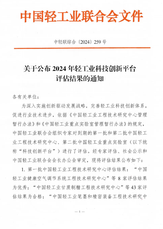 12月27日,中國輕工業(yè)聯(lián)合會公布了2024年輕工業(yè)科技創(chuàng)新平臺評估結(jié)果,參與評估的造紙行業(yè)科技創(chuàng)新平臺全部通過了評估。
