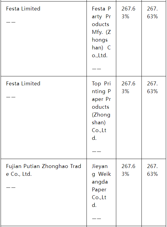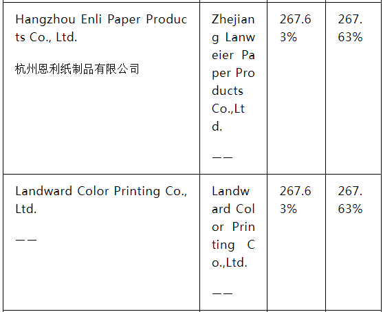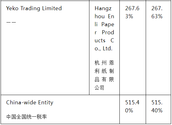 2025年1月22日,美國商務部對進口自中國、泰國和越南的紙盤(Paper Plates)作出反傾銷終裁,裁定中國生產商/出口商的傾銷率為267.63%—515.40%(抵消補貼后的保證金調整為267.63%—504.86%,具體稅率詳見下表)、泰國生產商/出口商的傾銷率為5.57%—73.17%、越南生產商/出口商的傾銷率為30.42%—165.27%(抵消補貼后的保證金調整為24.89%—159.74%)。同時,美國商務部對進口自中國和越南的紙盤作出反補貼肯定性終裁,裁定:福州恒利紙業有限公司(Fuzhou Hengli Paper Co., Ltd.)稅率為11.38%、金華市達達紙塑制品有限公司(Jinhua P&P Product Co., Ltd.)稅率為4.47%、寧波創酷國際貿易有限公司(Ningbo Artcool Co., Ltd.)、寧波奉化永發印務文具有限公司(Ningbo Fenghua Yongfa Printing Stationery Co., Ltd.)、浙江金晟環保股份有限公司 (Zhejiang Kingsun Eco-Pack Co., Ltd.)、浙江凌榮工藝品有限公司(Zhejiang Lingrong Crafts Co., Ltd.)因未配合應訴,被適用295.08%的懲罰性稅率、其他生產商/出口商的稅率為10.61%;越南生產商/出口商的稅率為5.53%—225.90%。美國國際貿易委員會(ITC)預計將于2025年3月7日對上述國家涉案產品作出反傾銷和反補貼產業損害終裁。本案涉及美國海關編碼4823.69.0040項下產品。 2024年2月15日,美國商務部宣布對進口自中國、泰國和越南的紙盤發起反傾銷調查,同時對進口自中國和越南的紙盤發起反補貼調查。2024年6月24日,美國商務部對進口自中國和越南的紙盤作出反補貼肯定性初裁。2024年8月29日,美國商務部對進口自中國、泰國和越南的紙盤作出反傾銷初裁。 中國出口商/生產商反傾銷稅率表: