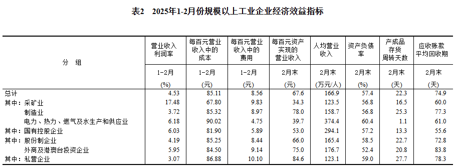 3月27日,國家統計局網站發布2025年1—2月份全國規模以上工業企業利潤情況。數據顯示,2025年1—2月份,全國規模以上工業企業實現利潤總額9109.9億元,同比下降0.3%。
