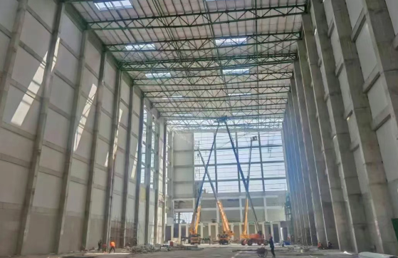 在亞太森博文化紙立體倉(cāng)項(xiàng)目現(xiàn)場(chǎng),工人們正進(jìn)行倉(cāng)庫(kù)照明系統(tǒng)調(diào)試與內(nèi)墻板安裝。