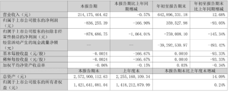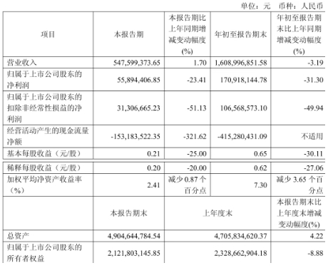 冠豪高新(600433) 公司實現營業總收入52.34億元,同比下降1.94%;歸母凈利潤虧損9432.39萬元,上年同期盈利6998.55萬元。