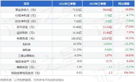 仙鶴股份(603733) 公司營業總收入90.63億元,同比上升24.8%,歸母凈利潤7.78億元,同比下降4.77%。