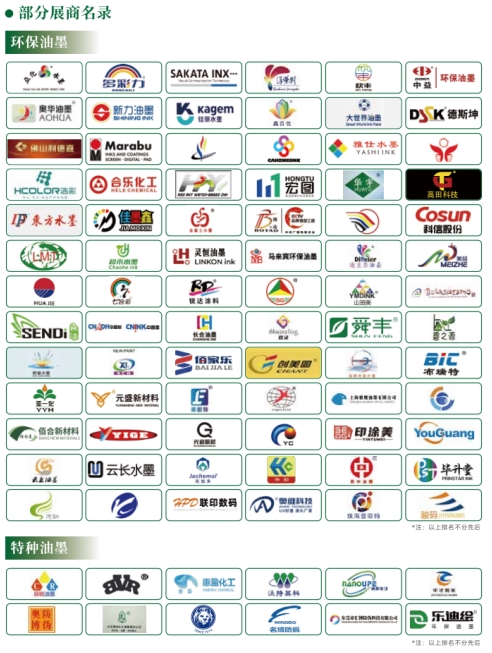 展品范圍 油墨展區: 環保油墨;水性油墨、UV油墨、大豆油墨等; 種油墨:防偽油黑、電子油墨、玻璃油墨、金屬油墨、耐候性油墨、煙包油墨、建筑裝飾油墨、家具油墨、鞋材油墨等; 其他產品:光油、膠粘劑、水性膠、環保洗車水、免酒精潤版液、植物淀粉噴粉、預涂腹等。 墨水展區: 水性墨水;UV墨水;油性暴水;熒光墨水;顏料墨水等。 材料展區: 樹脂、顏料、溶劑、填料、助劑等。 設備展區: 生產設備:砂磨機、分散機、攪拌機、三輥機、給料系統、調色系統、灌裝系統等 實驗設備:適性測試設備、正反向攪拌機、耐摩擦試驗機、粘度測試儀、吸收性測定儀、光澤度測定儀、干燥箱、調溫調濕設備等; 其他產品:噸桶、內襯、智能灌裝、氧化鋯珠、環保設備等。 技術及服務展區: 檢測設備、色卡、油墨演示配套設備及材料、協會、媒體等。 展會十大亮點