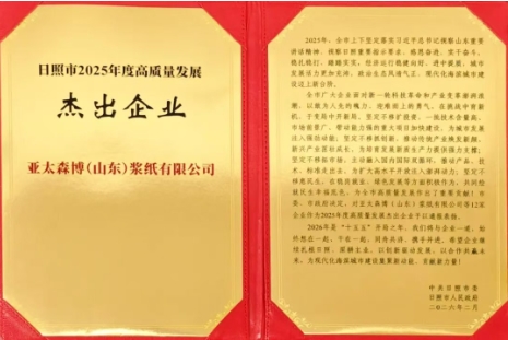 2月26日,日照市召開全市企業創新發展暨項目攻堅動員大會,亞太森博(山東)漿紙有限公司被市委、市政府授予2025年度全市高質量發展杰出企業。市委書記李在武出席會議并講話,市委副書記、市長王新生主持,市領導楊留星、賈剛、王峰出席。金鷹集團山東公共事務總經理、公司黨委書記李潤明出席大會并代表公司上臺領獎。