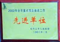 (2003年1月 2002年全市重點項目推進工作先進單位) |